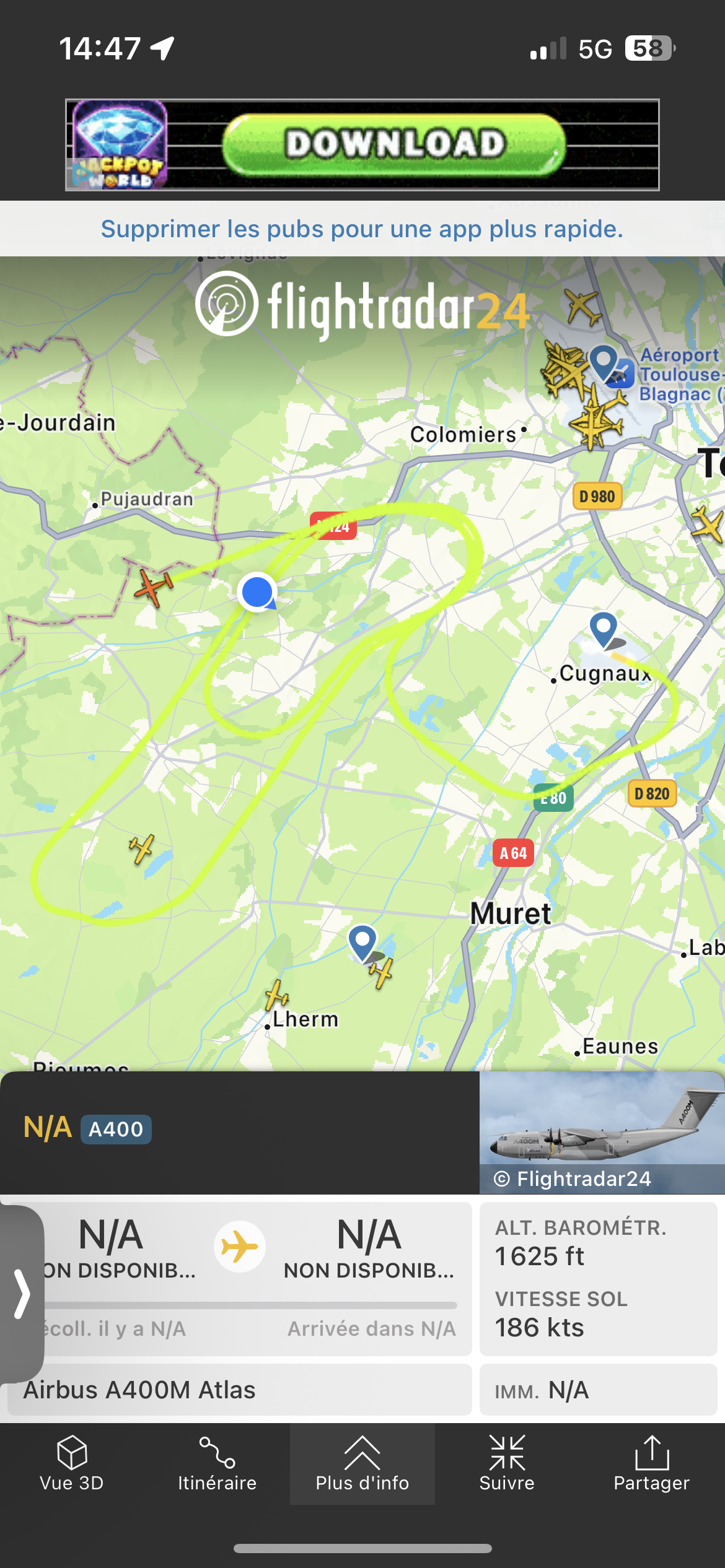 depuis quelques jours passages répétés de l'A400M a l'atterrissage ET au décollage pourquoi? et bien sûr toujours tres tres bas au dessus des maisons....